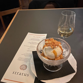 dessert - apple coppetta with almond streusel and ricotta gelato, paired with the lovely 2023 Stratus ‘Botrytis Affected’ Semillon, Niagara-on-the-Lake